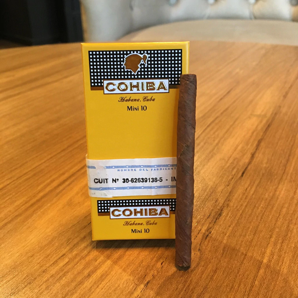 Los Cohiba Mini son cigarros enrollados a máquina del tamaño de un cigarrillo, son mecanizados y están hechos de las mismas hojas de los Habanos enrollados a mano más grandes, hechos de hoja de tabaco 100% cubano. Ideales para una breve fumada. Presentación Caja x 10 unidades.