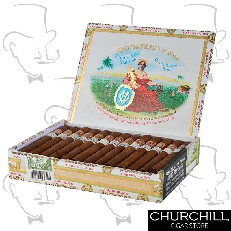 Quintero es una marca interesante para aquellos que desean acceder al sabor del Habano con una fortaleza media, pero con un precio asequible. Quintero es una de las pocas marcas cubanas que no nació en La Habana sino en Cienfuegos. Todos los tabacos con que se elabora la ligada de esta marca proceden de las zonas de Vuelta Abajo y Semi Vuelta. Elaborados con la técnica Totalmente a Mano con Tripa Corta. Presentación Caja x 25 unidades.